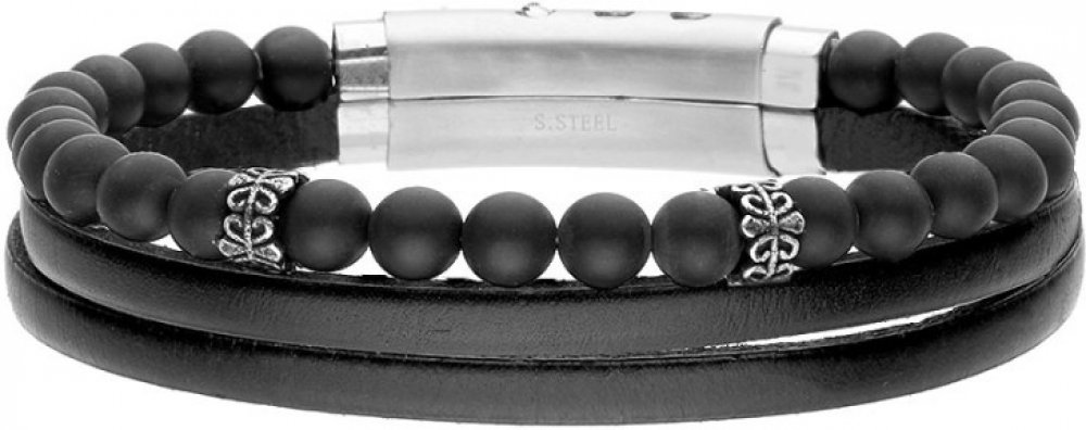 Manoki pánský náramek Gerard onyx pravá kůže chirurgická ocel BA1173B Černá
