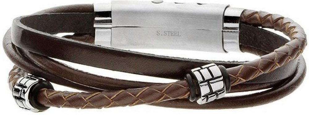 Manoki pánský náramek Lewis chirurgická ocel přírodní kůže BA438A hnědá