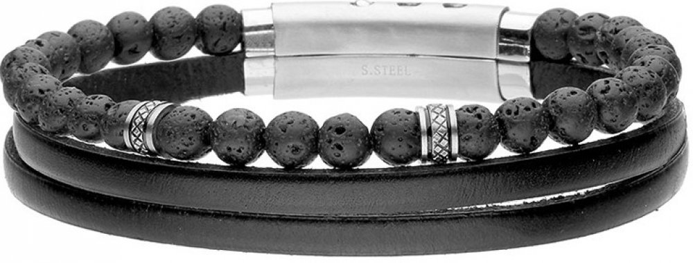 Manoki pánský náramek Miquel lávový kámen chirurgická ocel kůže BA789B černá