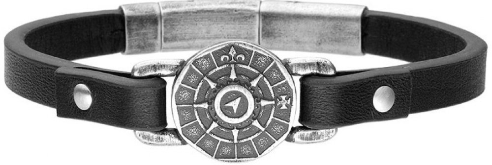 Manoki pánský náramek Větrná růžice přírodní kůže a chirurgická ocel BA1178B Černá