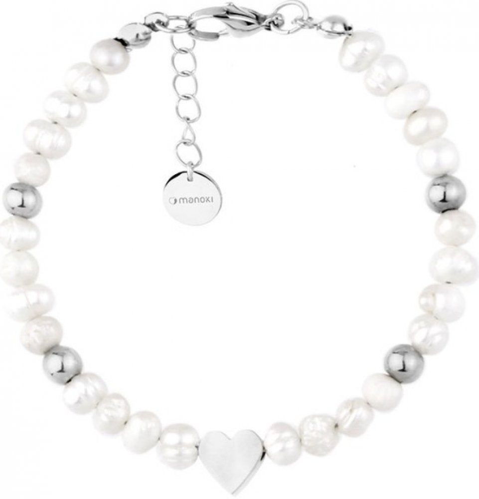 Manoki Perlový náramek Alice srdce chirurgická ocel sladkovodní perla BA999 stříbrná Bílá