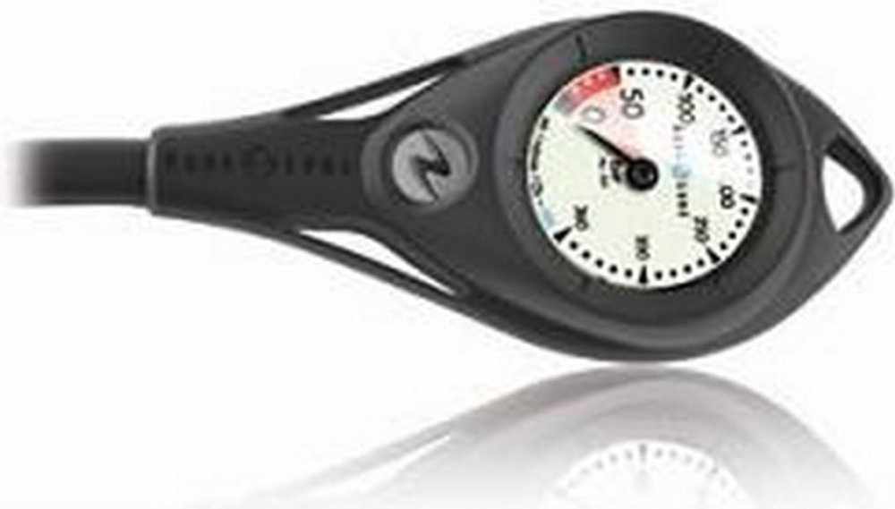 PopisManometr AL 50 Aqualung je osvědčený, lehce přehledný a odolný přístroj. Je vhodný pro tlak do 300 bar (stupnice do 360 bar), je dodáván s hadicí dlouhou 80 cm. Manometr lze použít na potápění se vzduchem i Nitroxem do 40% obsahu kyslíku.