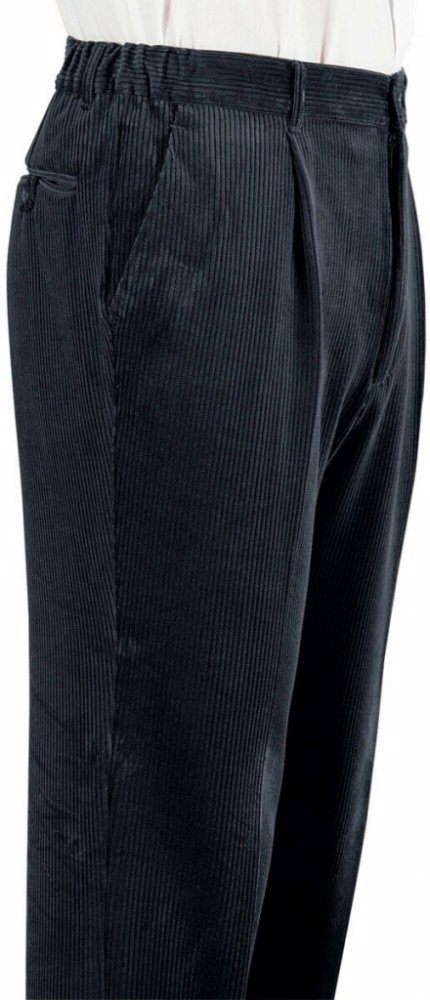 Pro každodenní nošení Vám nabízíme tyto pohodlné pánské kalhoty. Manšestrové kalhoty s pružným pasem. Jsou zhotovené ze směsi bavlny a elastenu, proto jsou velmi přizpůsobivé a neocenitelně pohodlné. Kalhoty mají malé záševky a elastické vsadky. Poklopec na zip. 2 klínové kapsy + kapsa s paspulkou a zapínání na zip vzadu. Perte na 30 °C. Žehlení na mírný stupeň.