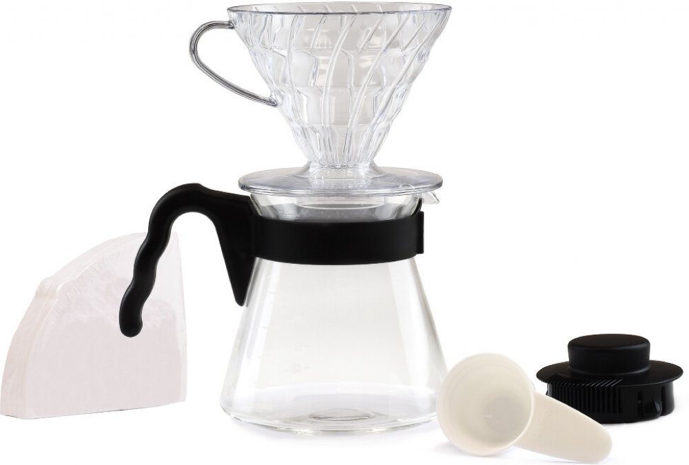 Sada Hario Pour Over Kit obsahuje vše, co potřebujete k přípravě dokonale vyvážené a aromatické kávy – ikonický dripper V60, skleněnou karafu, odměrku a papírové filtry. Díky precizní extrakci získáte čistou chuť kávy, v níž vyniknou všechny její jemné tóny. Stylový design a kvalitní materiály dělají z této sady nejen praktického pomocníka, ale i krásný doplněk do každé kuchyně.