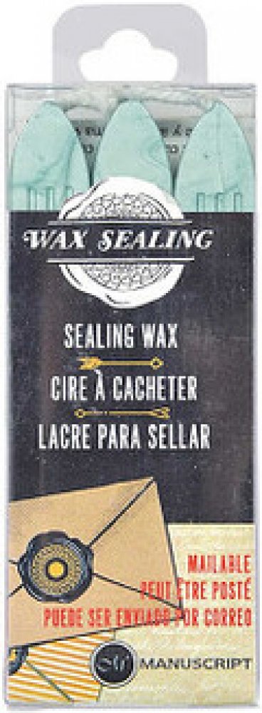Sada pečetících vosků Manuscript 3ks – aqua Sada tří pečetících vosků ve světle modré barvě. Určené pro použití s pečetidlem - podívejte se na naši nabídku. Knot zapalte a vosk nechte odkapat na určené místo, poté přiložte pečeť a jemně vtiskněte motiv do vosku. Doporučujeme na dopisy, balíčky a jiné tvoření.