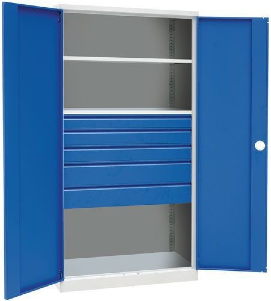 Dílenská skříň vhodná pro uložení pracovních nástrojů a pomůcek. Skříň je vybavena dvěmi výškově stavitelnými policemi a pěti zásuvkami s výškou 87, 109 a 155 mm. Police i zásuvky jsou přestavitelné v rastru 20 mm. Zásuvky jsou umístěny na kuličkových výsuvech.