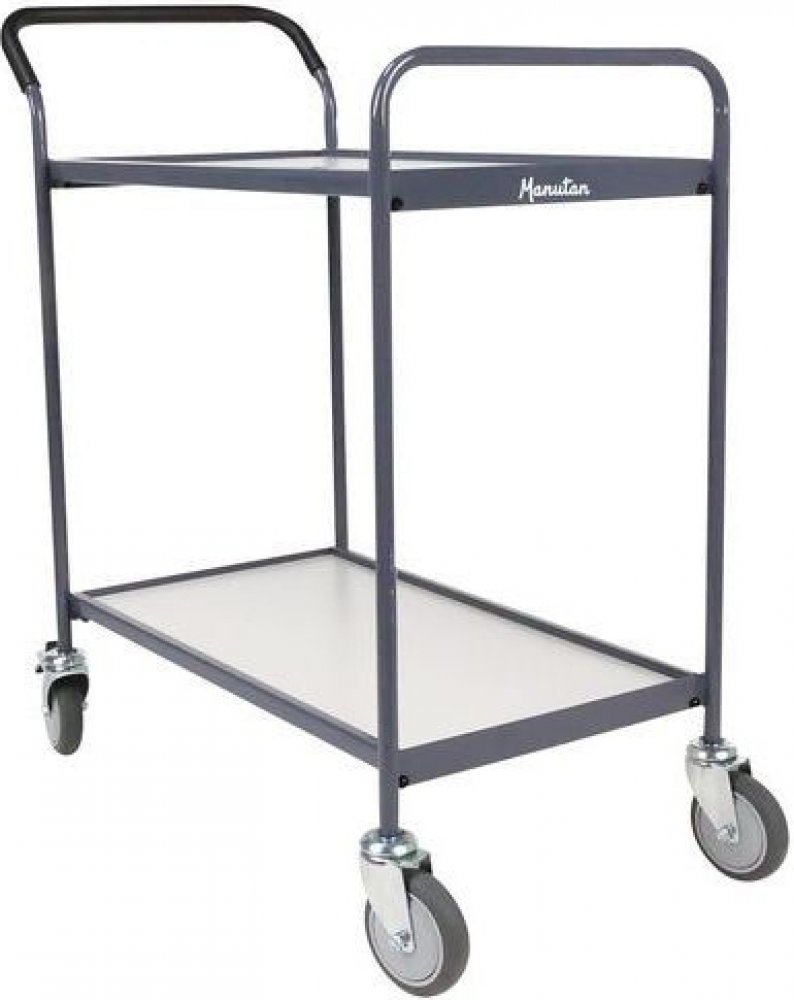 Vozík se dvěma policemi vhodný pro přepravu zboží a materiálu ve skladech a na pracovištích. Police jsou vyrobené z MDF desek a jsou zasazeny do kovového rámu. Rám je oproti ložné ploše vyvýšený a zabraňuje tak vypadávání zboží a materiálu z vozíku. Vozík je vybavený kovovým madlem pro jednodušší manévrovatelnost. Pojízdnost zajišťují čtyři otočná kola, z nichž dvě jsou opatřená brzdou.