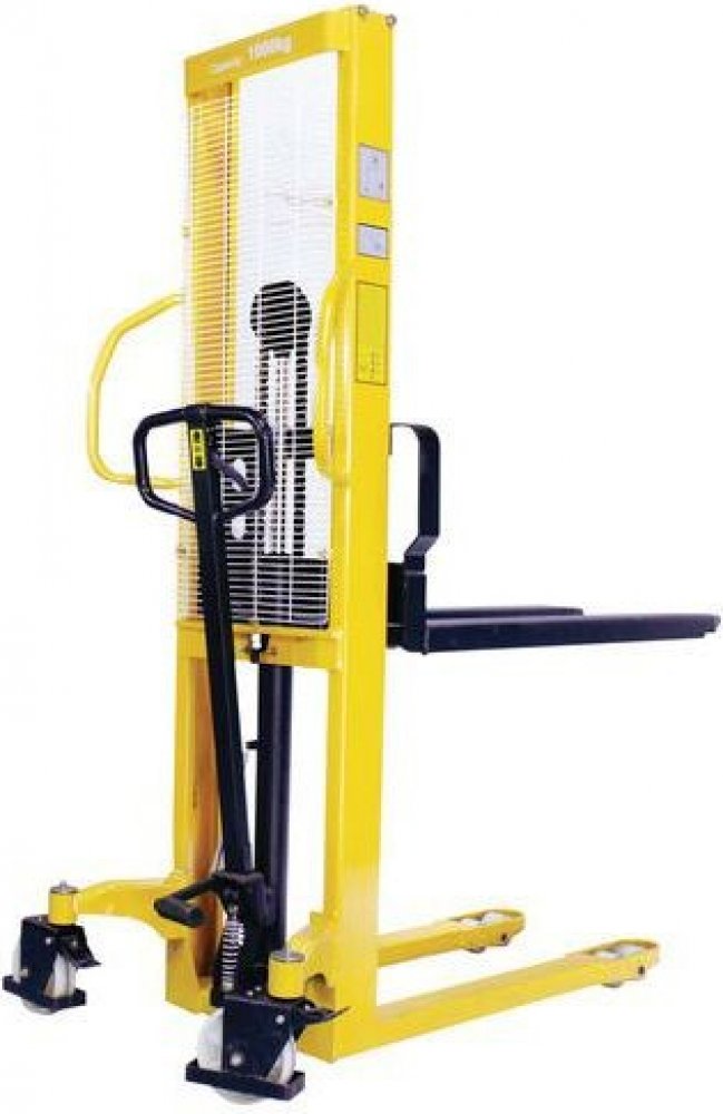 rucni zvedaci vozik vhodny pro nakladku, vykladku a stohovani palet. zdvih lze ovladat rucne oji nebo pomoci nozniho pedalu.ridici kola jsou opatrena brzdami.vyska zdvihu na jedno stlaceni je 2 cm. povrchova uprava zlutym epoxidovym lakem.