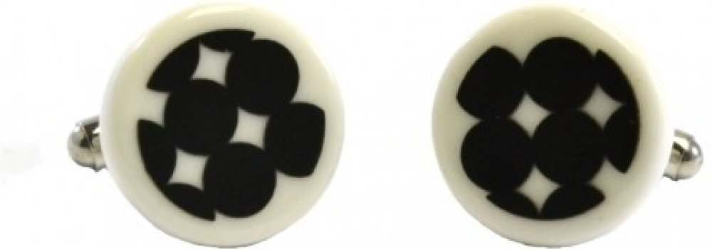 Manžetové knoflíčky jsou vyrobeny z porcelánu ruční výrobou s ocelovou mechanikou a porcelánovým potiskem černé barvy.