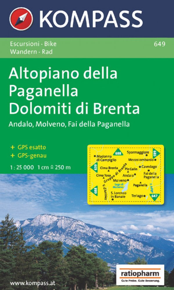 Turistická mapa východní části Brenta, okolí měst Lavis a Trento v měřítku 1:25 000. Jednostranná turistická mapa obsahuje turistické pásové značení doplněné o číslo trasy, obtížnost a kvalitu značení v terénu, stezky pro horská kola. Výškopis pomocí stínovaného reliéfu a vrstevnic po 25 metrech. GPS souřadnice v systému UTM WGS 84. Symbolické znaky pro možnosti ubytování, občerstvení a jiné turis...