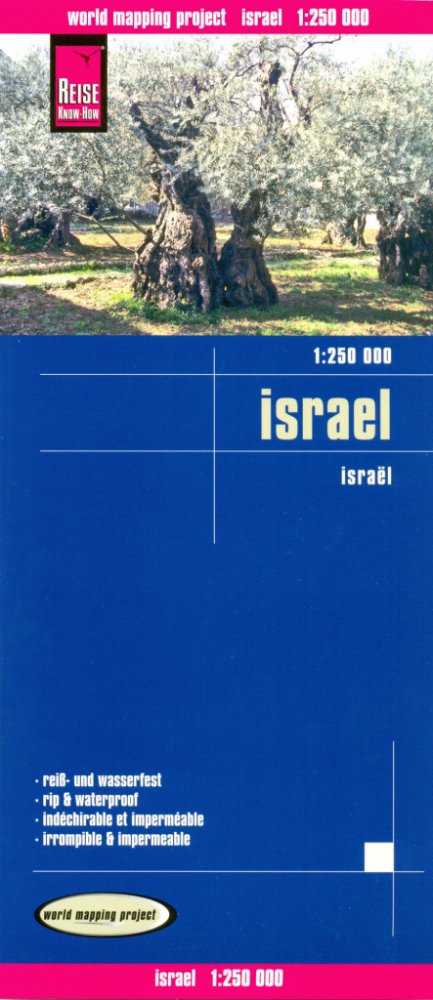 Podrobná oboustranná automapa s výraznou barevnou hypsometrií a vrstevnicemi po 100-500 metrech, zeměpisné souřadnice a WGS 84 pro GPS. V mapě naleznete všechny informace, které jako řidič nutně potřebujete (kilometráž, benzínové stanice, odpočívadla), dále mapa obsahuje symboly pro označení turistických zajímavostí, jednoznačně odlišeny kulturní a přírodní památky. Nechybí znaky pro hotely. Vyznačena dálková pěší trasa "Izraelská stezka". Popis mapy v latince, větší sídla i hebrejským a arabským písmem. Obsahuje rejstřík sídel. Speciální odolný materiál proti vodě i oděru. Mapa je oblíbená zejména pro svou dobrou přehlednost a čitelnost. Vydání 2015.