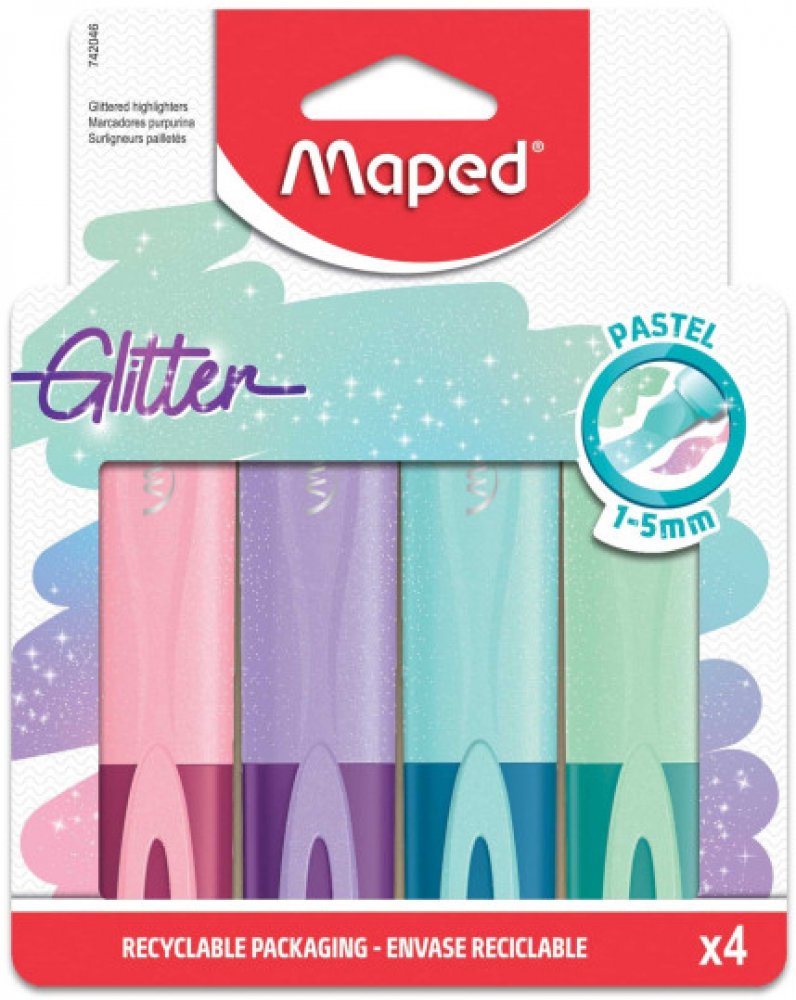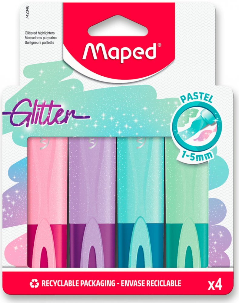 Zvýrazňovače využívají především děti ve školách, ale i dospělí je v kanceláři využijí. Jestliže máte rádi organizaci a chcete si udělat pořádek ve svých poznámkách, zvýrazňovač Maped je pro vás ten pravý. Fialová, růžová, tyrkysová a zelená barva zvýrazňovače je tvořena permanentním inkoustem, díky kterému lze dokument i kopírovat. Se zkoseným hrotem jednoduše zvýrazníte větší obsah textu. Co se týče velikosti stopy, tak ta u zvýrazňovače Maped má hodnotu 5 mm. V balení dostanete 4 ks zvýrazňovačů. Klíčové vlastnosti zvýrazňovače MAPED Fluo Peps Glitter - sada 4 barev Se zvýrazňovači si v textu označíte vše důležité Zkosený hrot pro preciznější podtržení Barvy v sadě: fialová, růžová, tyrkysová a zelená Zvýrazňovač Maped, který lze kopírovat a nerozmazává tisk Šířku stopy očekávejte 5 mm Uvnitř balení naleznete 4 ks zvýrazňovačů