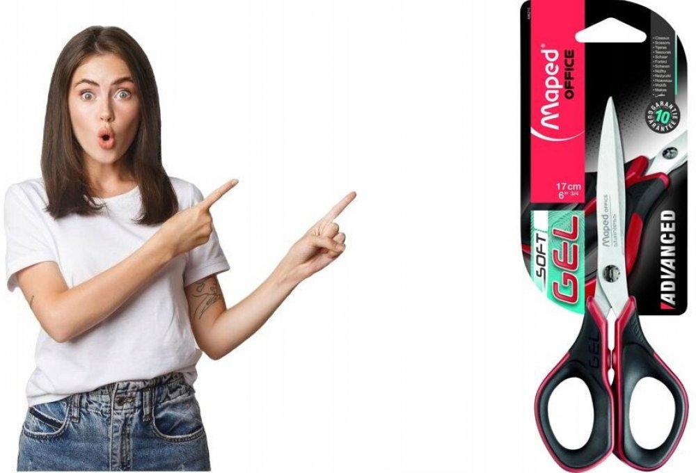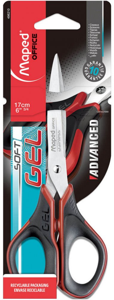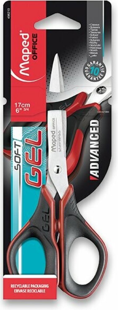 Nůžky Maped Advanced Gel 17 cm - 1328/9496210. Nůžky o velikosti 17 cm. Čepele i nýt z nerezové oceli. Měkké symetrické ergonomické rukojeti ze speciálního gelu. Pohodlné a přesné pro všechny uchopení i velikosti ruky. Kulaté čepele. Záruka 5 let.