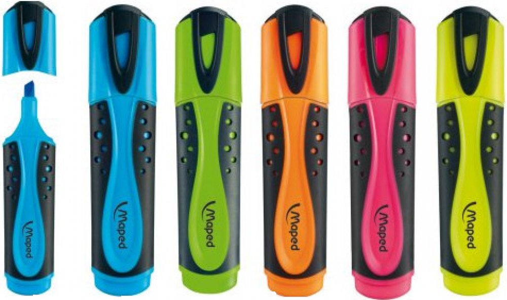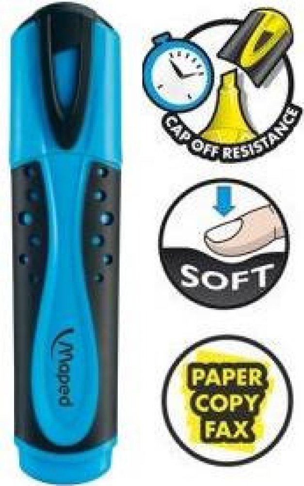 Nový plochý zvýrazňovač s měkkým úchopem. Víčko a tělo v barvě inkoustu.