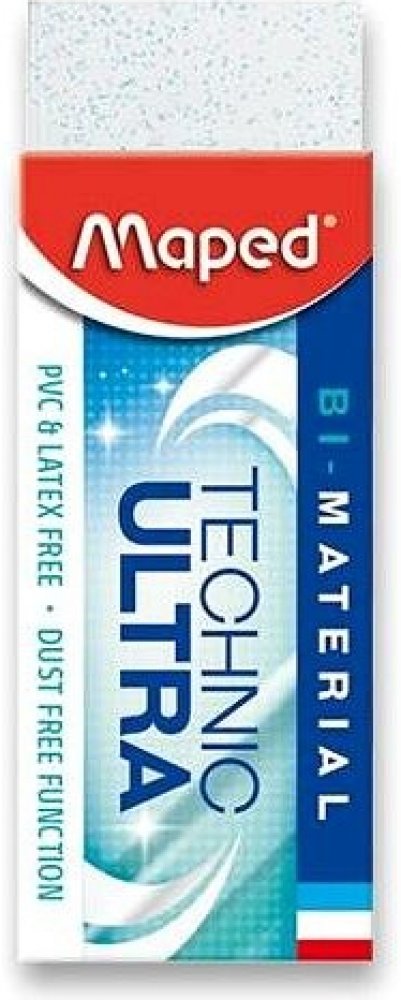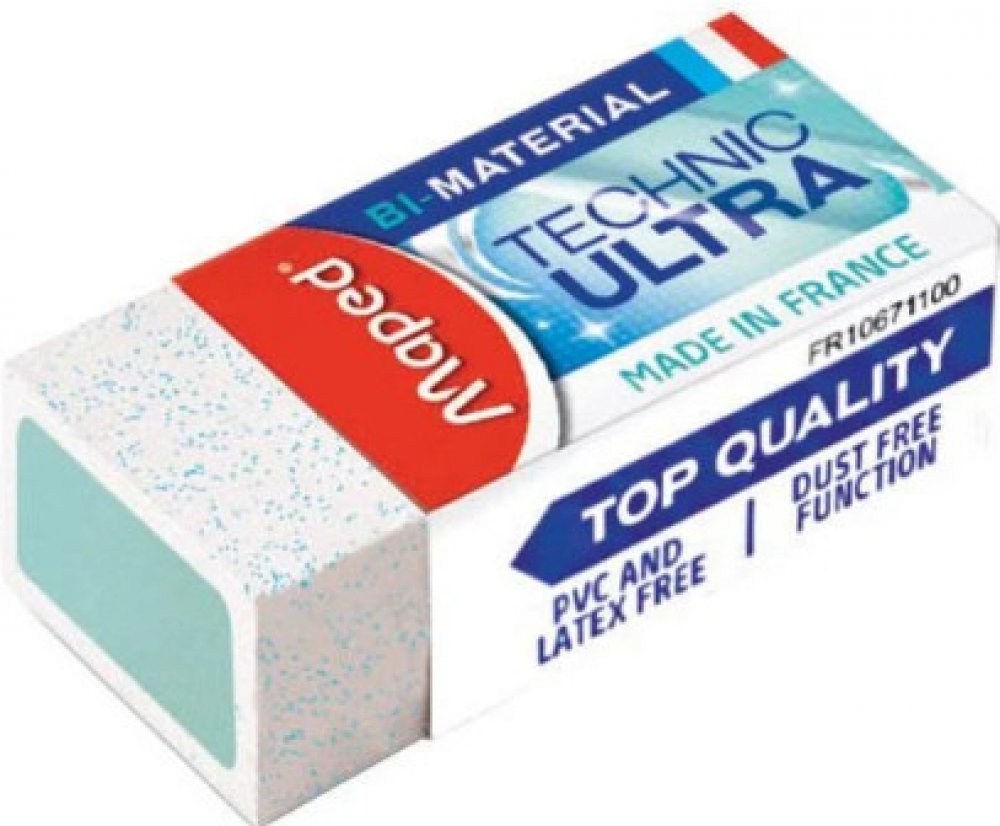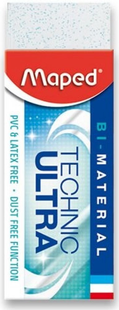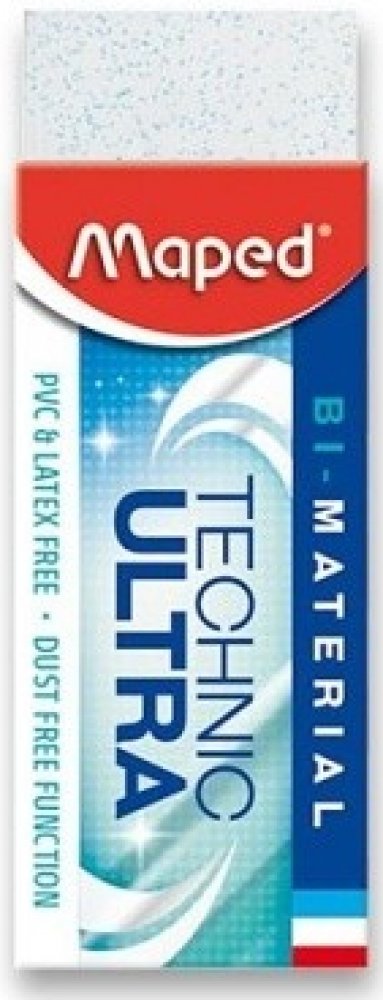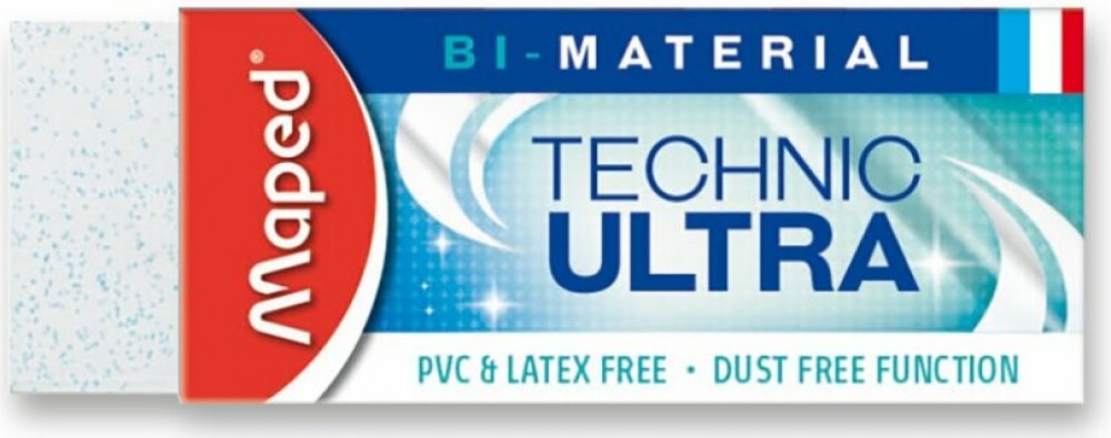 Pryž Maped Technic Ultra je vysoce účinná technická pryž složená ze dvou materiálů. Balená v kartonovém obalu. Drží tvar a nezanechává žmolky. Neobsahuje PVC ani ftaláty.