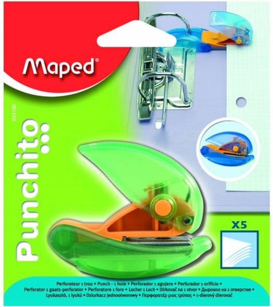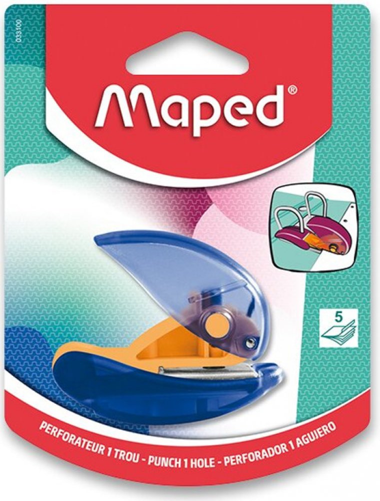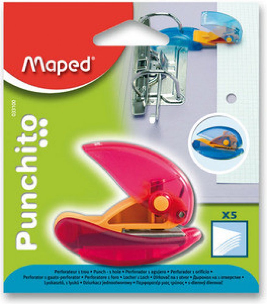 Děrovačka na jeden otvor Maped Punchito, na 5 listů, blistr, mix barev