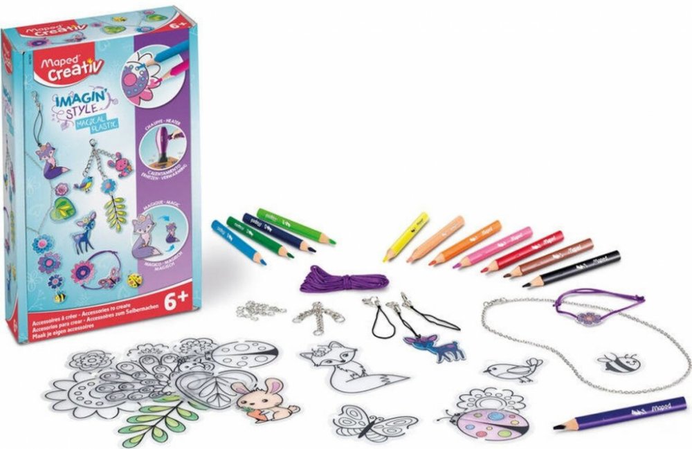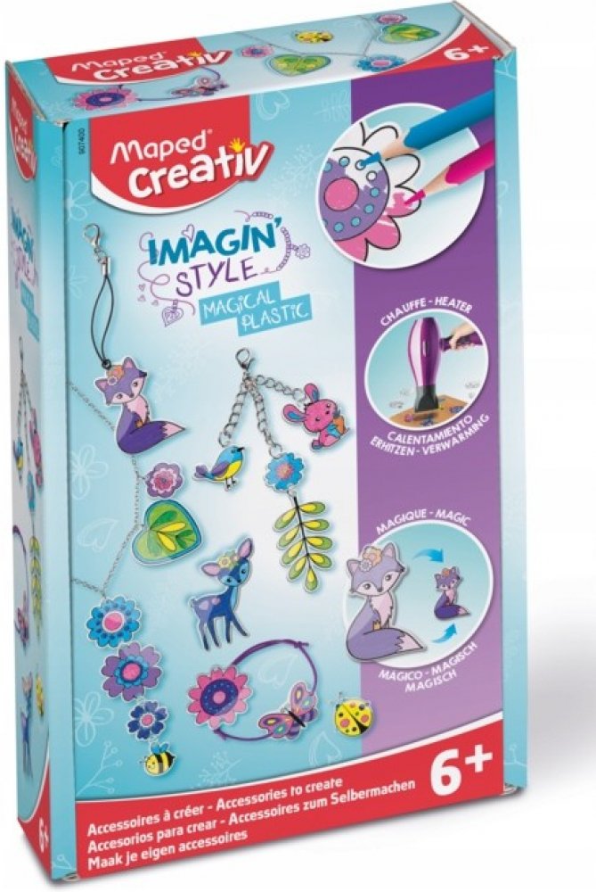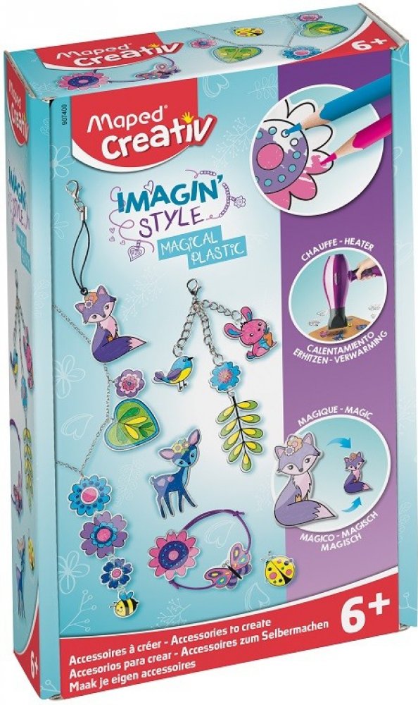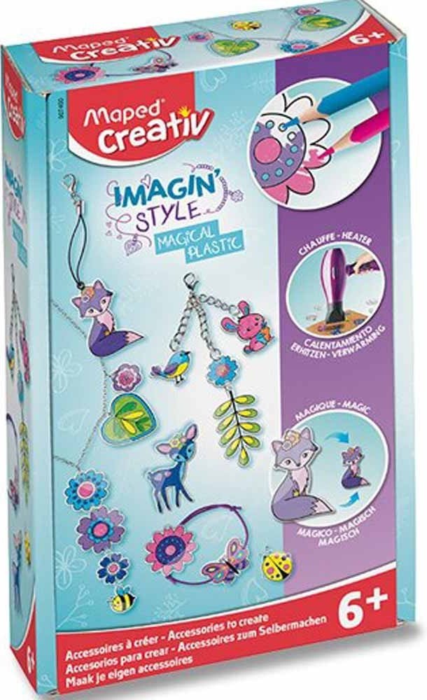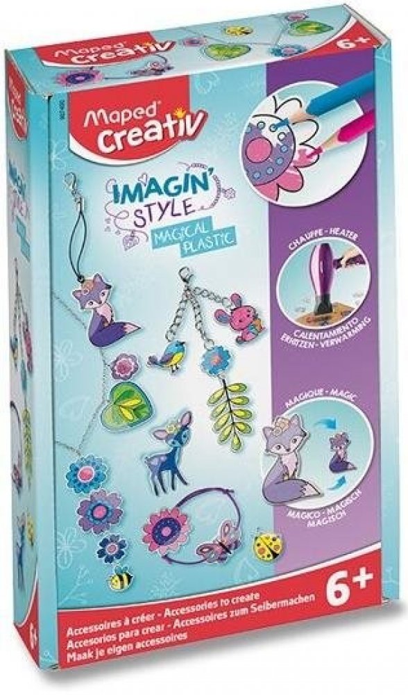 Kreativní sada Maped Creativ Imagin´Style Magical Plastic je určena pro tvorbu trendových doplňků jako jsou náramky, přívěsky nebo náhrdelníky. Tato pestrá a zábavná aktivita rozvíjí dětskou zručnost a jemnou motoriku.
