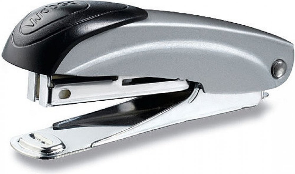Malá kovová sešívačka se zabudovaným rozešívačem.