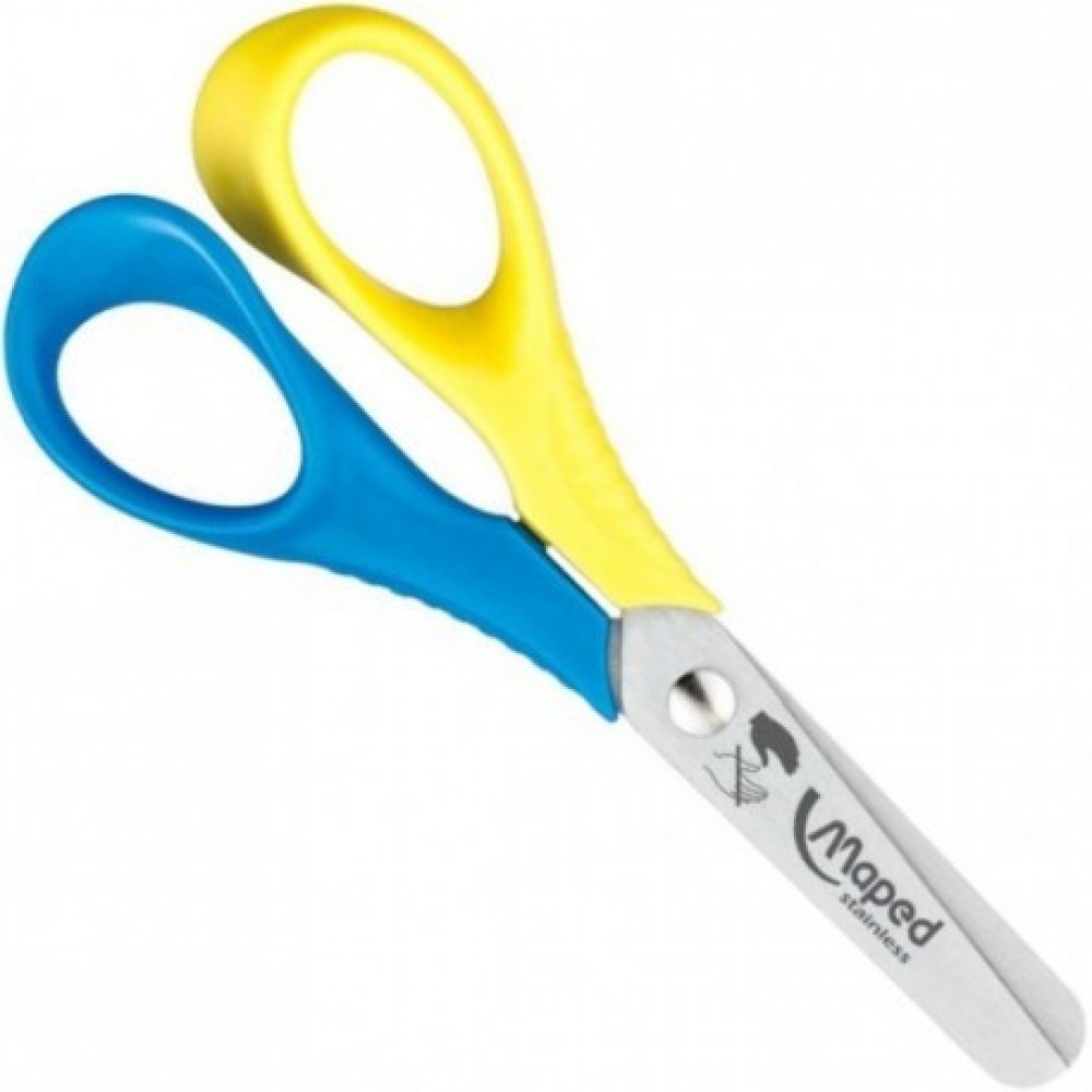 Nůžky pro začátečníky - zaoblené špičky, převrácené čepele pro leváky. Celková délka nůžek 12 cm, délka střihu 4 cm. Čepele z broušené nerezové ocele. Nůžky jsou přizpůsobeny dětským rukám. Barva rukojetí - modrá.