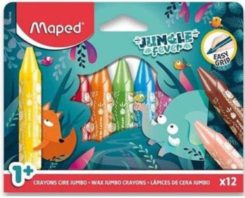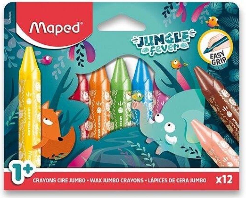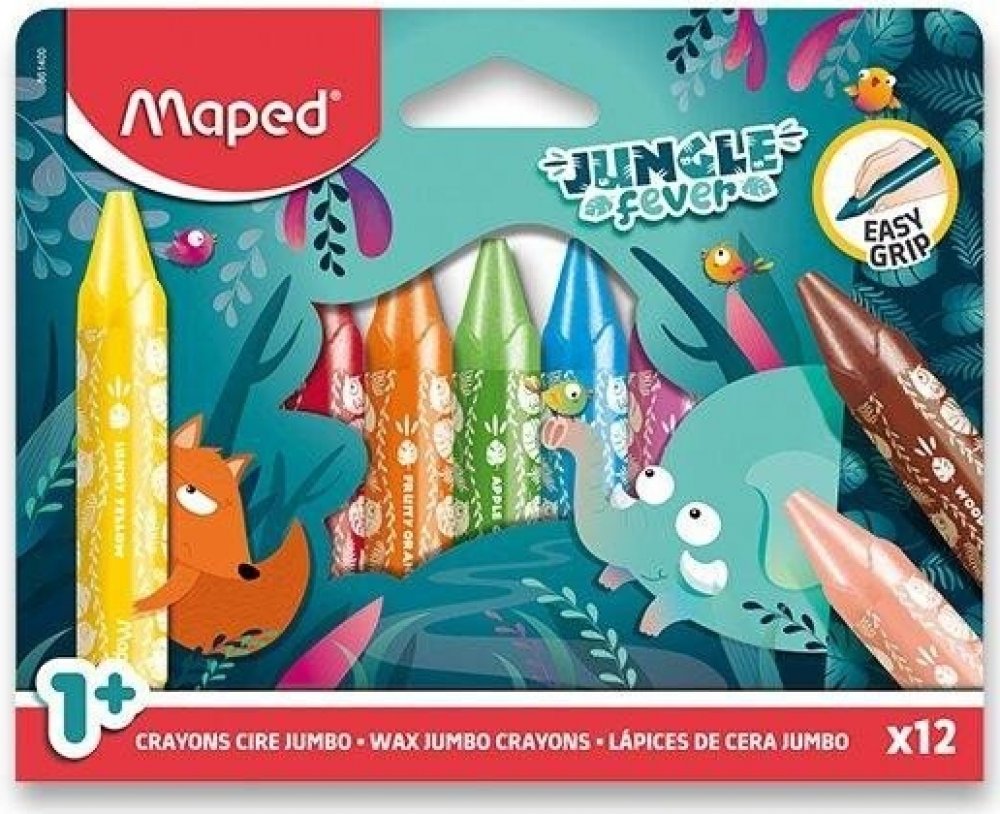 Voskovky Maped Jungle Fever Jumbo v atraktivním motivu se zvířátky z džungle s trojhranným tělem.