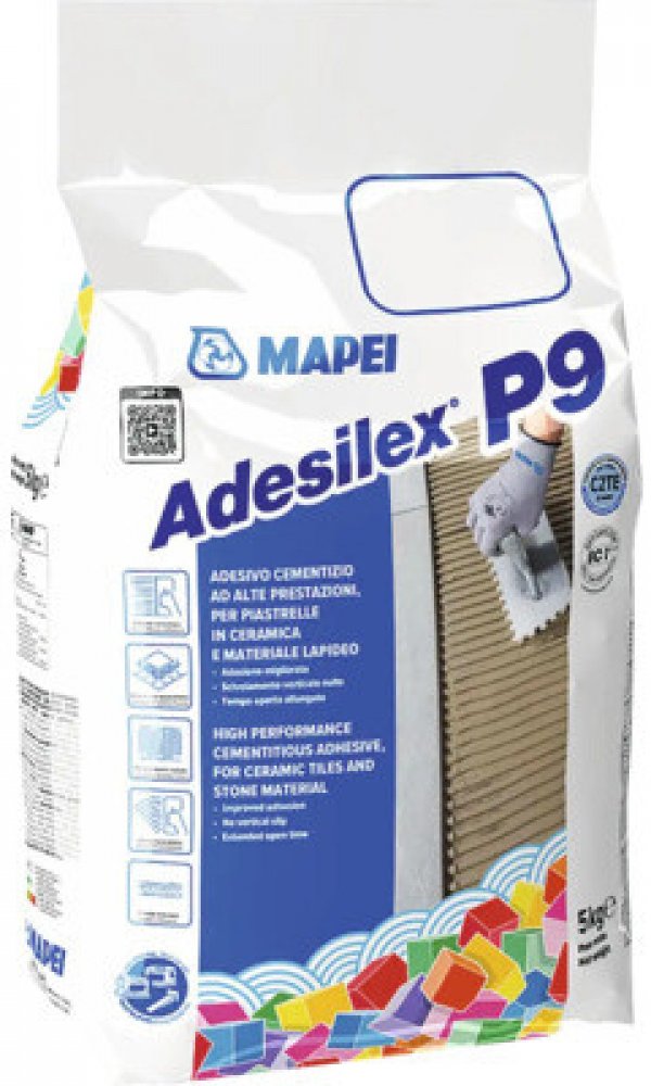 Lepidlo na obklady a dlažbu MAPEI Adesilex P9 C2TE 5 kg šedé. MAPEI Adesilex P9 je vysoce kvalitní zlepšené cementové lepidlo se sníženým skluzem, prodlouženou dobou zavadnutí, určené na obklady a dlažby z keramiky a přírodního kamene.