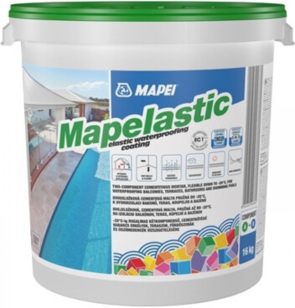 Mapelastic je vhodný pro ošetření povrchů, které jsou v trvalém kontaktu s pitnou vodou; po jeho vytvrzení je však třeba provést opakovaný oplach vodou o teplotě 40°C.