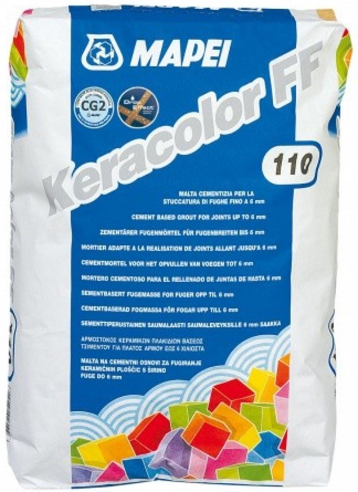 Cementová spárovací hmota pro rovnoměrné, pevné a odolné spáry obkladů a dlažeb. Mapei Keracolor FF je vysoce kvalitní suchá prášková spárovací hmota na bázi cementu určená pro spárování keramických obkladů a dlažeb různých formátů, včetně běžných i velkoformátových materiálů. Po smíchání s vodou vznikne homogenní, snadno zpracovatelná malta, která se dobře vetře mezi spáry a vytváří pevné, rovnoměrné a esteticky jednotné povrchy. Produkt je navržen tak, aby minimalizoval riziko výskytu pruhů či skvrn a poskytoval odolnost vůči mechanickému namáhání, povětrnostním vlivům a běžným čistícím prostředkům. Keracolor FF je vhodný pro použití jak v interiéru, tak exteriéru, a jeho složení zajišťuje dlouhodobou pevnost a stálost barvy spár i při častém používání.