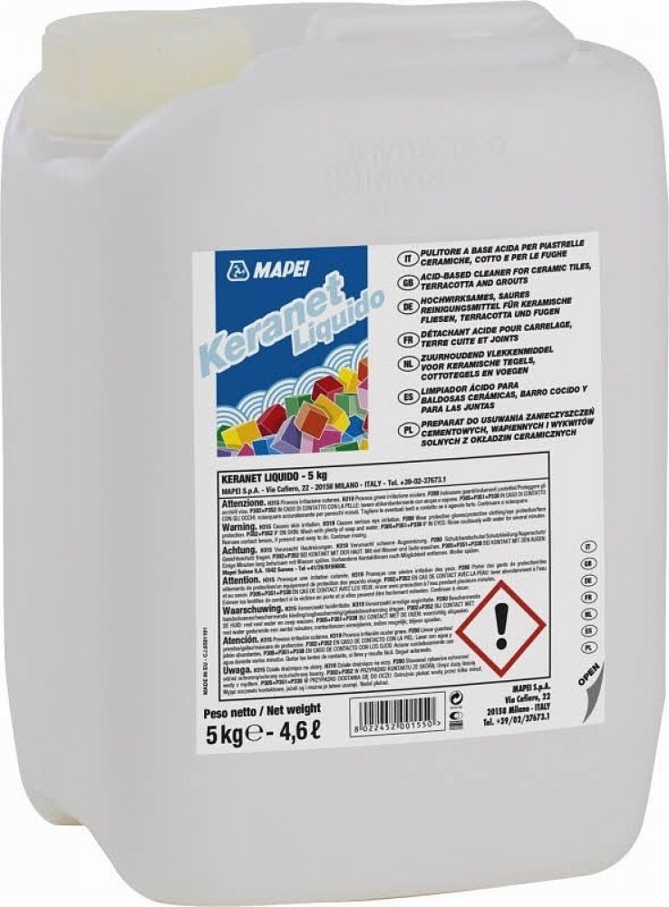 Čištění zbytků cementu, vápna, vápenného výkvětu, zbytků cementových lepidel a cementových částic na povrchu obkladů a dlažeb, skleněných mozaik, a to jak na podlahách, tak i na obkladech stěn. Čištění keramiky typu „cotto“ před její konečnou úpravou a k čištění kamenných prvků s výjimkou mramoru a jiných přírodních kamenů s obsahem vápence.