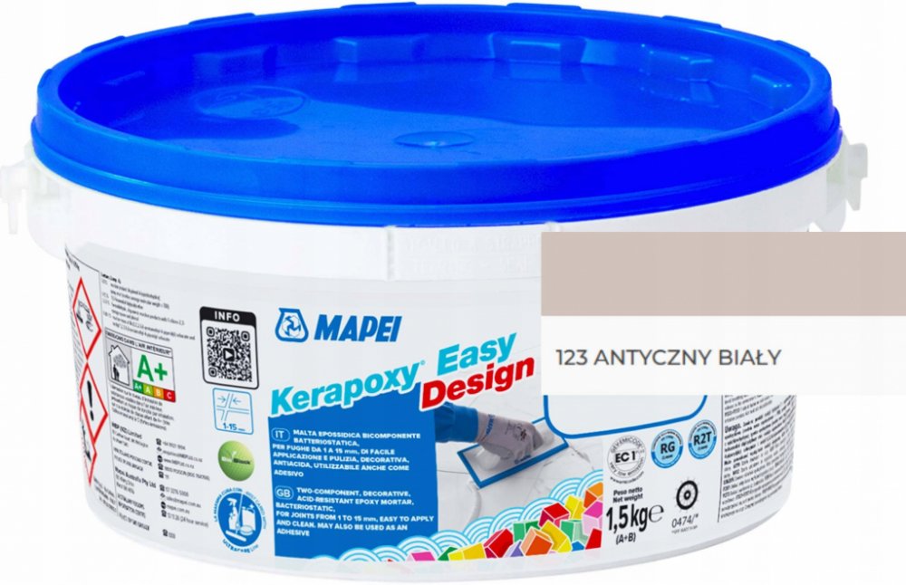 Mapei Spárovací hmota Kerapoxy Easy Design je epoxidová spárovací malta se zlepšenou zpracovatelností a s velmi nízkým obsahem těkavých organických látek • dvousložková víceúčelová dekorativní kyselinovzdorná epoxidová spárovací malta s bakteriostatickým činidlem a technologií BioBlock • snadná aplikace • nesavá a snadno čistitelná • antibakteriální a odolná proti plísním • přispívá k zdravějšímu prostředí v interiérech • je ve shodě se systémem HACCP o hygieně potravin • vhodná pro tloušťku spáry do 15 mm