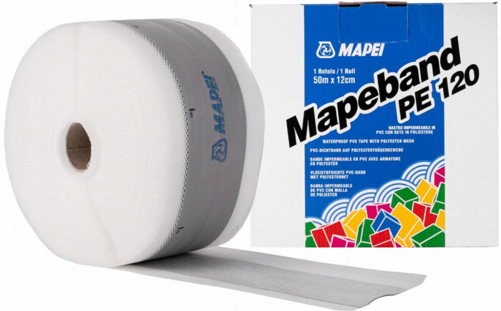 Poznámka: Spoje mezi jednotlivými pásy Mapebandu PE 120 musí být také lepeny Mapegumem WPS.