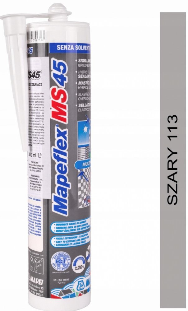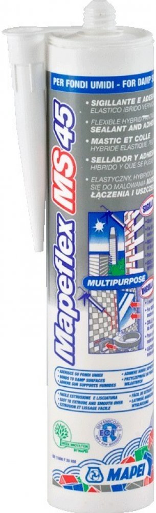 Mapeflex MS45 je vyvinutý speciálně pro těsnění dilatačních spár a spár ve styku vodorovných a svislých konstrukcí. Doporučuje se také k pružnému lepení materiálů stejného nebo odlišné povahy běžně používaných ve stavebnictví, jako úplná náhrada nebo ve spojení s mechanickými fixačními prostředky. Je vhodný pro použití v interiéru i exteriéru.