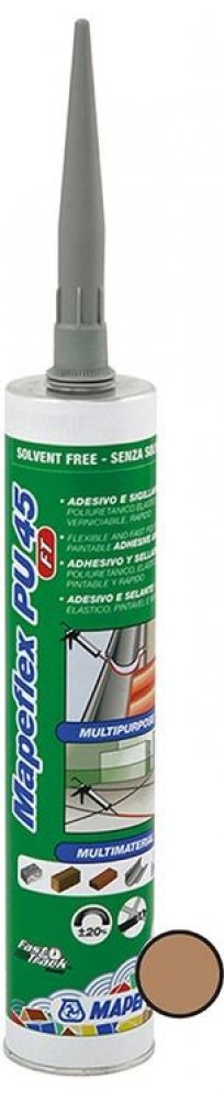 MAPEI Mapeflex PU 45 FT je jednosložkový rychlý a přetíratelný těsnící tmel a lepidlo na bázi polyuretanu, vyznačující se vysokou pružností. Je speciálně vyvinut k těsnění konstrukčních spojů a dilatačních spár na svislých i vodorovných plochách. Navíc ho lze použít jako lepidlo na pružné spoje na všechny běžné stavební materiály. Lze ho tak použít na těsnění dilatačních spár na průmyslových podlahách (i s vysokým dopravním zatížením), betonových podlahách na parkovištích, keramických obkladech a dlažbách, betonových stěnách apod. Dále pak těsnění spár, trhlin, větracích potrubí a kabelových prostupů nebo i plechových prvků, například okapů.