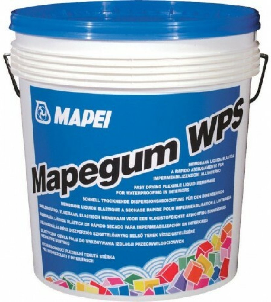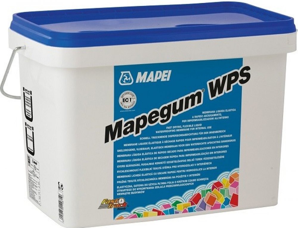 Mapegum WPS je jednosložková šedá pasta na bázi syntetických pryskyřic ve vodní emulzi a zcela bez obsahu rozpouštědel. Tixotropní konzistence stěrky umožňuje její jednoduché nanášení na vodorovné, šikmé, ale i svislé plochy. Po rychlém odpaření vody vznikne vysoce houževnatá, nelepivá pružná membrána s velmi dobrou odolností proti vodě. Je lehce pochůzná a tvoří vhodný podklad s velmi dobrou přídržností následných vrstev lepidel, používaných při montáži obkladů a dlažeb z keramiky a přírodního kamene.Mapegum WPS může být nanášen ocelovým hladítkem, válečkem, plochým štětcem nebo nástřikem (pokud je to nezbytné, zřeďte ho max. 5% vody). Podklad musí být pevný, čistý, suchý a zbavený mastnot, starých nátěrů a dalších vrstev, které by mohly negativním způsobem ovlivnitpřídržnost stěrky k podkladu.Mapegum WPS musí být nanášen ve stejnoměrné tloušťce a tenkých vrstvách (max. cca 1 mm na jednu vrstvu). Před nanášením další vrstvy (nanášené napříč původním směrem nanášení) je nutno počkat, až je předešlá vrstva vyschlá (nejméně 1-2 hodiny v závislosti na podmínkách okolního prostředí).Aplikace: ocelovým hladítkem, válečkem, plochým štětcem nebo nástřikem ve dvou křížem nanášených vrstvách (každý v tloušťce 1 mm).Spotřeba1,5 kg/m2 a mm tloušťky vrstvy.Balenívědra 10 a 5 kg.