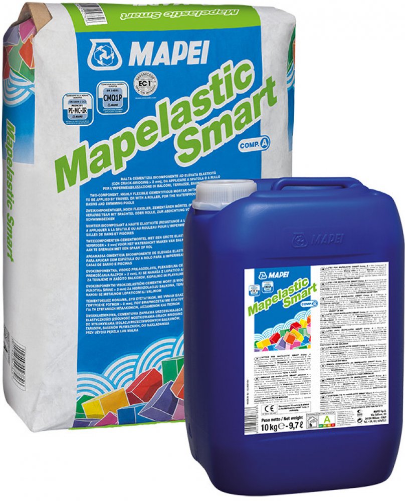 Mapelastic Smart se dodává ve dvou předem nadávkovaných složkách, které musí být vzájemně smíchány bez přidání vody a dalších přísad.