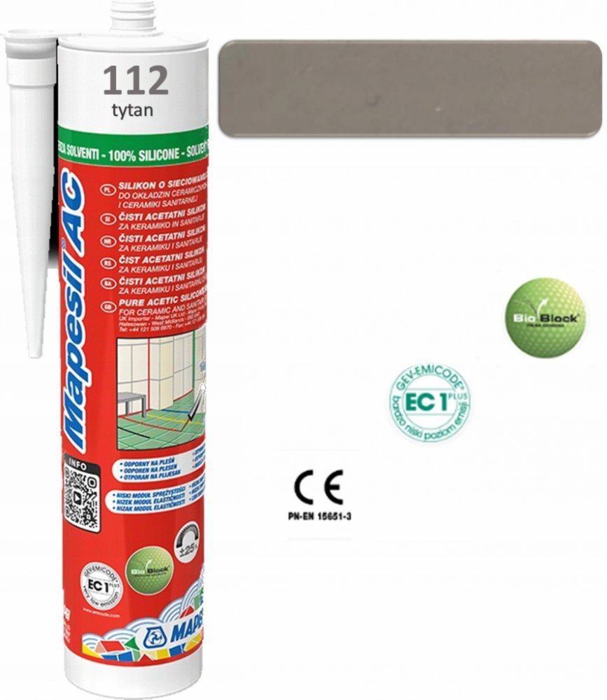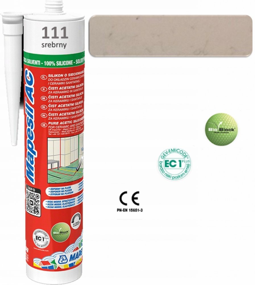MAPESIL AC je dle platné legislaitivy ČR materiál, který může být z hygienického hlediska v trvalém kontaktu s pitnou vodou (příslušné atesty k vyžádání v MAPEI ČR).