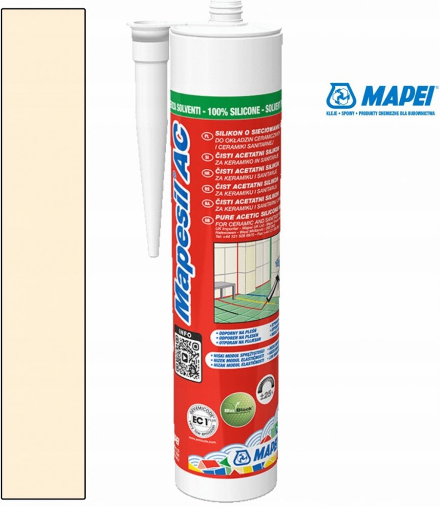 MAPESIL AC je dle platné legislaitivy ČR materiál, který může být z hygienického hlediska v trvalém kontaktu s pitnou vodou (příslušné atesty k vyžádání v MAPEI ČR).