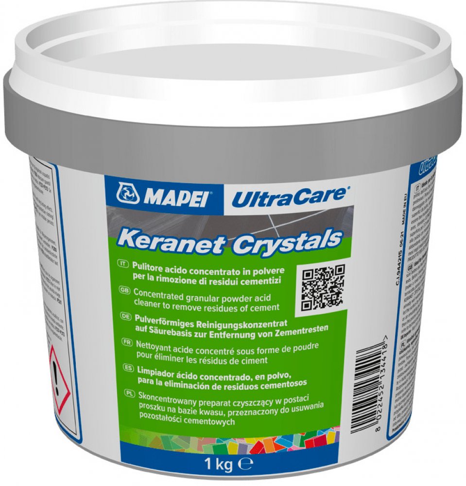 ULTRACARE KERANET CRYSTAL je ve vodě rozpoustný koncentrovaný čistič na bázi kyselina ve formě prášku ideální na hloubkové čištění po instalaci obkladů a dlažeb s použitím cementových výrobků. Dokonalý k odstranění zbytků cementových výrobků po vytvrzení a jejich stop z povrchů, jako je terakota, obklady a dlažby z keramiky a přírodního kamene odolné proti kyselinám. Vhodný k odstranění solného a vápenného výkvětu.