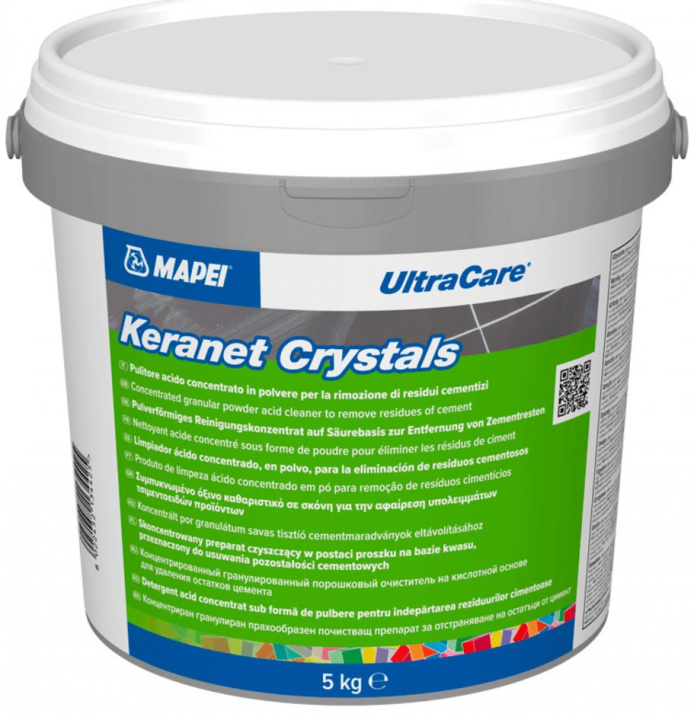MAPEI ULTRACARE KERANET CRYSTAL je ve vodě rozpustný koncentrovaný čistič na bázi kyselin ve formě prášku, ideální na hloubkové čištění po instalaci obkladů a dlažeb s použitím cementových výrobků. Dokonalý k odstranění zbytků cementových výrobků po vytvrzení a jejich stop z povrchů, jako je terakota, obklady a dlažby z keramiky a přírodního kamene odolné proti kyselinám. Vhodný k odstranění solného a vápenného výkvětu.