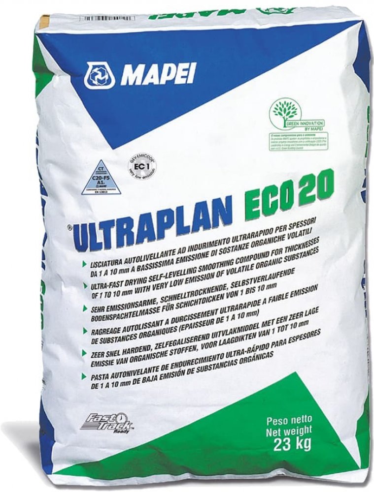 Podklad musí být před aplikací stěrky fixován proti pohybu, vyzrálý, suchý, čistý, bez prasklin, pevný v tahu i tlaku, zbavený zbytků lepidel, nesoudržných povrchových vrstev, mastnoty, prachu a dalších nečistot. Před aplikací MAPEI ULTRAPLAN ECO 20 je nutné provést precizní ošetření podkladu pomocí vhodné penetrace pro Váš typ podkladu, například pro savé betonové materiály použijte MAPEI PRIMER G PRO.