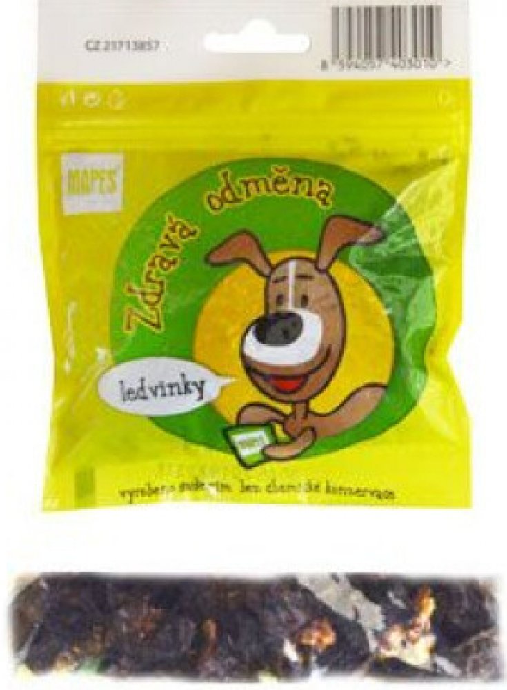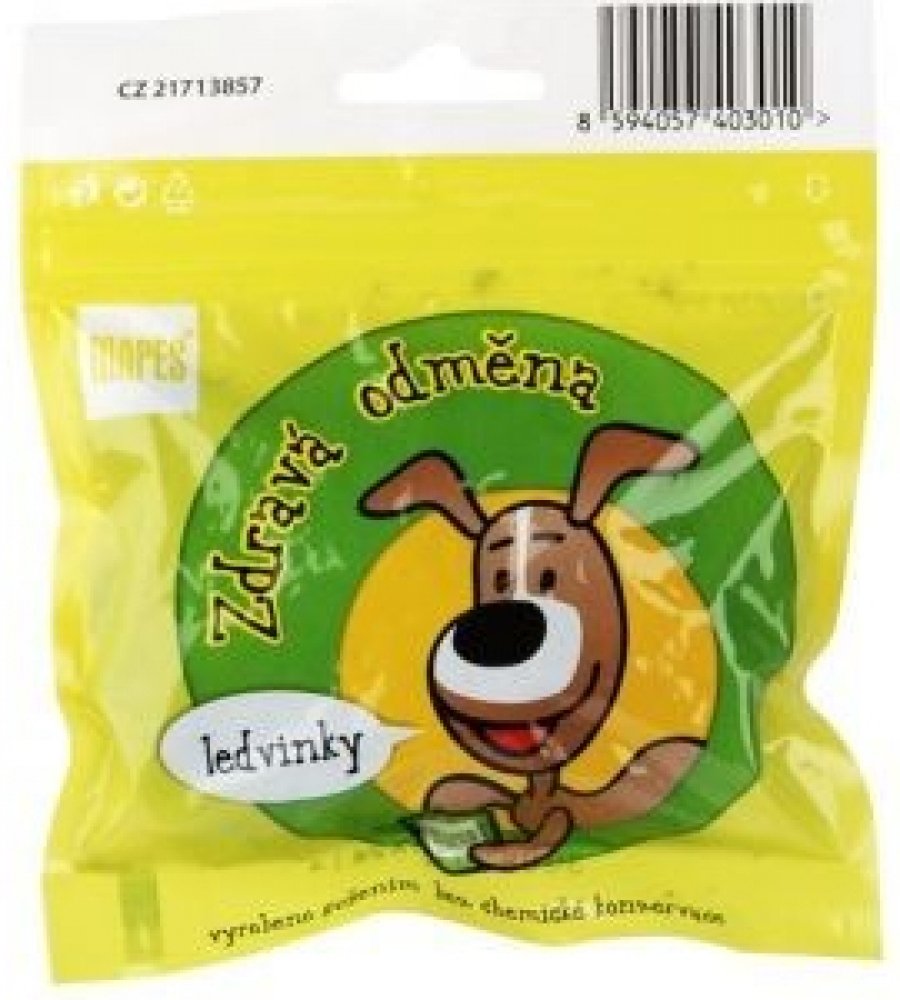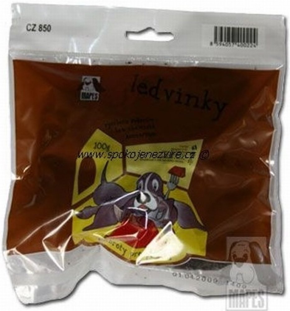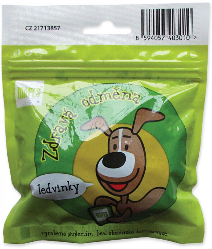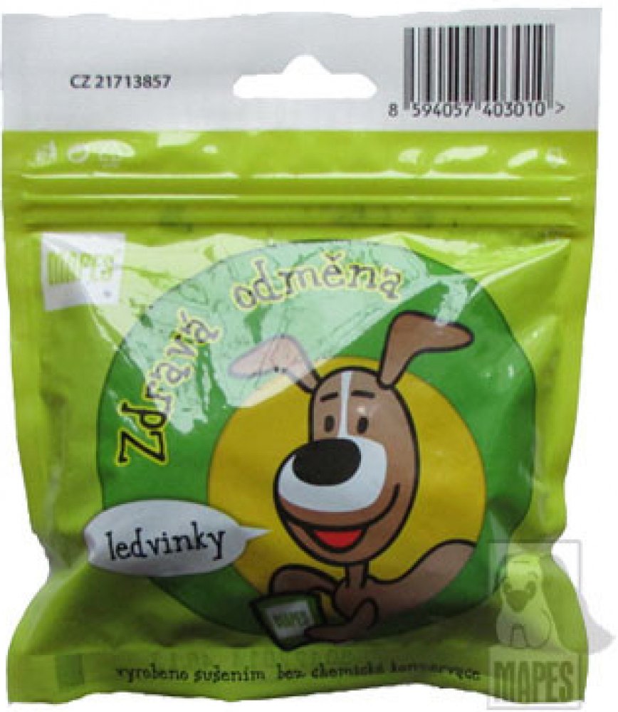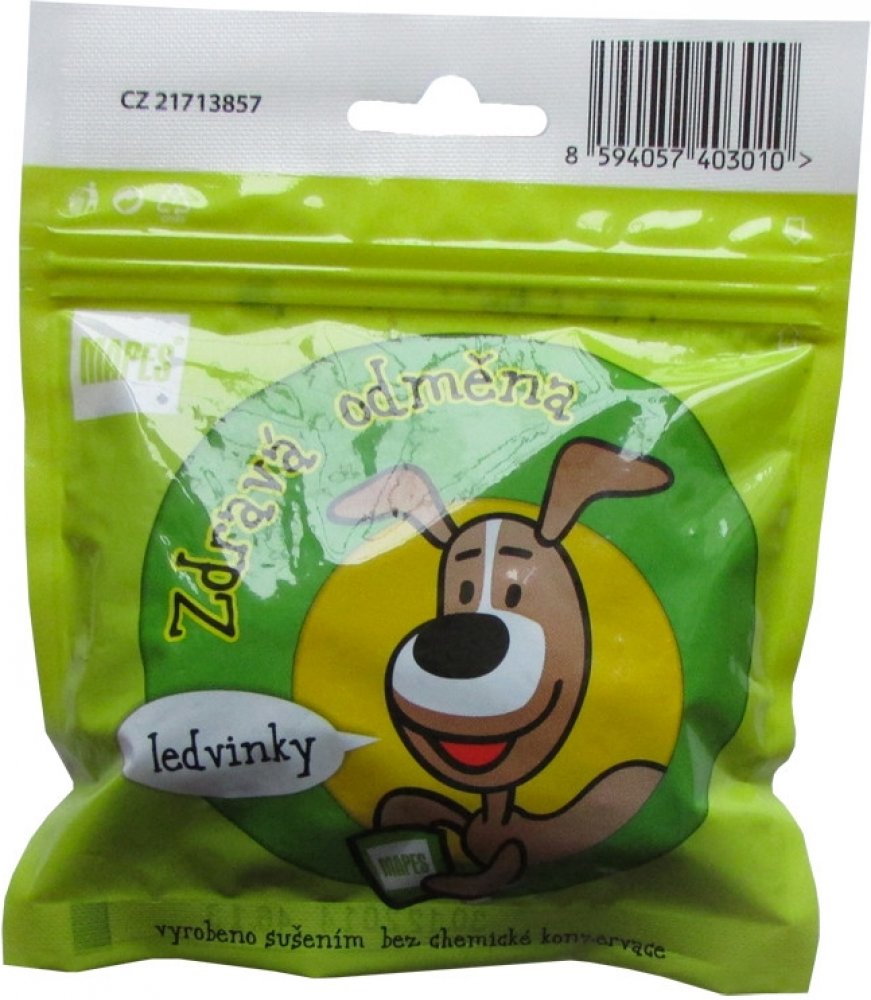 Vepřové ledvinky upravené tak, aby se daly použít jako odměna na procházce, na cvičáku nebo jen tak pro radost. Zdravá odměna Mapes - ledvinky jsou nakrájené na malé kostičky. Ledvinky jsou bohatým zdrojem vitaminu A, E a B. Obal je měkký se zipem. Pytlík můžete snadno dát do kapsy a opět uzavřít.