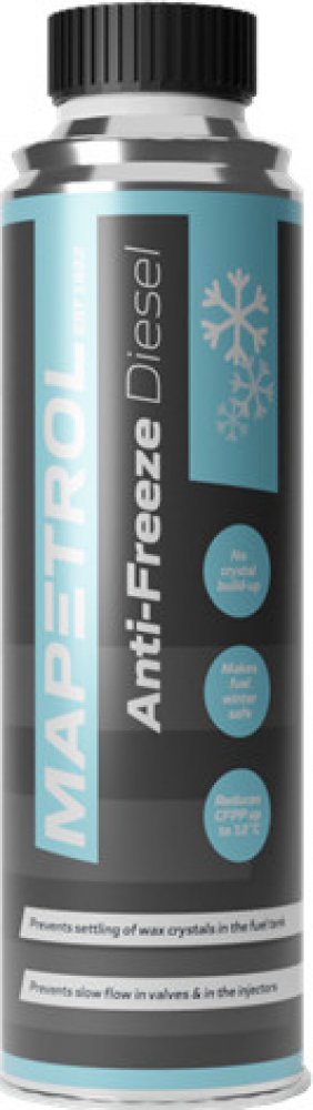 Mapetrol Anti-Freeze Diesel zlepšuje plynulost toku nafty při chladnějších provozních podmínkách. Zajišťuje, že je nafta vhodná pro zimní použití, a chrání ji před tvorbou krystalů nebo zamrzáním. Je určen pro všechny dieselové motory, včetně těch s technologií common rail, ať už mají turbodmychadlo, nebo ne. Můžete jej používat jak s nízkosirnou, tak s běžnou naftou (bio) na bázi síry. Tento přípravek garantuje, že palivo bude bezpečné i v zimních podmínkách Vlastnosti: • Zajišťuje bezproblémový průtok nafty v zimních podmínkách • Zabraňuje krystalizaci a zvětšování pevných částic při nízkých teplotách • Snižuje tuhnutí paliva až o 12 °C v závislosti na složení paliva • Zabraňuje usazování pevných částic na dně nádrže • Chrání palivový systém před korozí