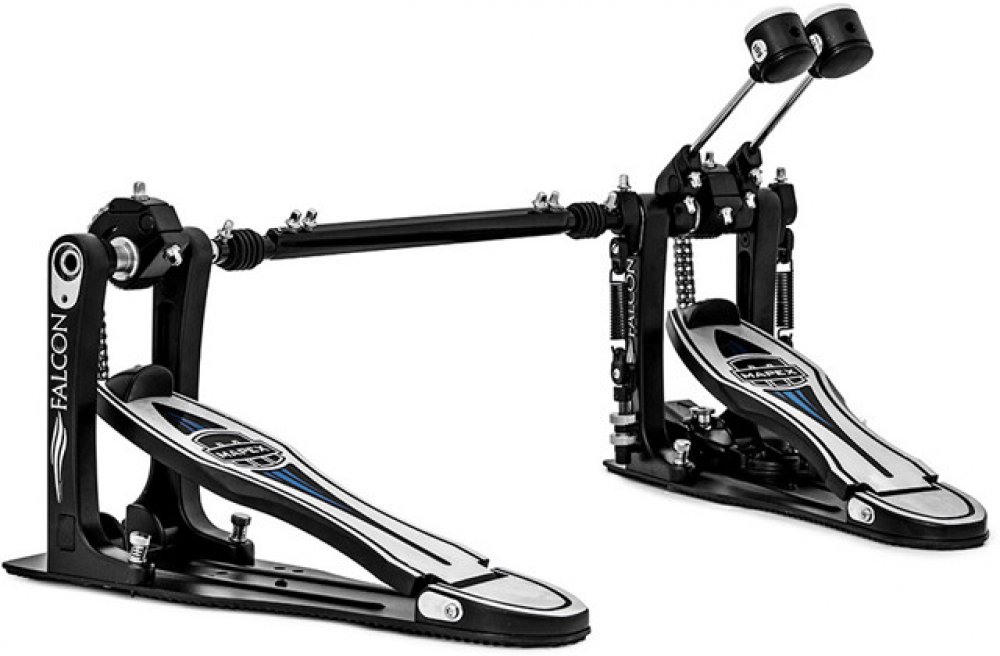 Pedály z řady Falcon nyní nabízí nový design i nové možnosti nastavení. Spodní deska protiskluzovou gumou je zmenšena na minimum, pata je ložisková, úchyt k ráfku kopáku má oboustranné plovoucí čelisti, aby se pata nikdy nezvedala, beater nabízí filcové i plastové zakončení.