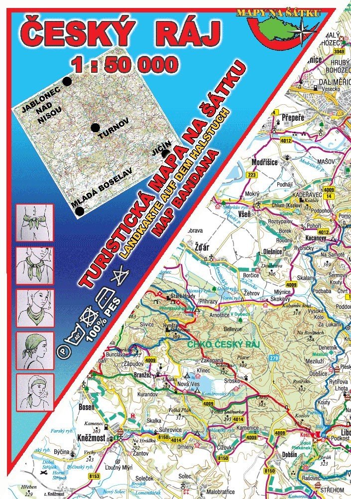 Unikátní mapa na našem trhu, kterou máte při výletech stále u sebe, ať už v batohu, kapse, na zápěstí, či jako čelenku na hlavě. Je odolná rozmarům počasí, a i když ji ušpiníte, snadno ji vyperete a můžete dále používat. Ideální společník pro turisty, cykloturisty, vodáky a všechny ostatní, kdo se vydávají do přírody. Kromě orientace v přírodě, šátek samozřejmě můžete využít mnoha jinými způsoby, ...