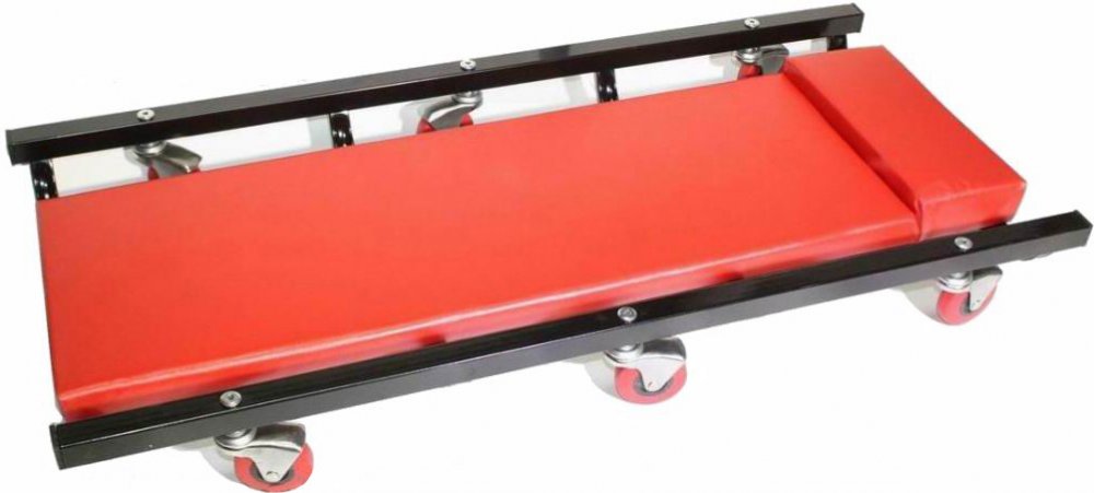 Montážní mobilní lehátko Mobilní montážní lehátko najde své využití v dílnách, autoservisech, ale i doma. Je vybaveno šesti otočnými kolečky pro maximální mobilitu. Povrch lehátka je odolný vůči otěru a výplň s opěrkou zajišťuje pohodlí při práci.Technické údaje:Rozměry: 92 x 43 x 10 cm