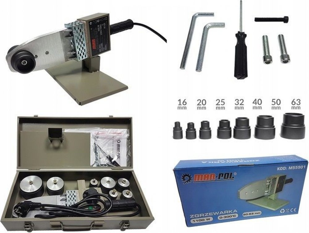 Tato svářečka je určena pro instalatérské práce, pro svařování plastových trubek z materiálu (PELD), homopolymer polypropylenu (PP) a kopolymer (PPC,PPR). Svářečka je opatřena regulátorem teploty od 0-300°C. Je uložena spolu s nástavci v praktickém kovovém kufříku. Nástavce jsou potažené teflonem. Možnost svařování potrubí od 20 do 63 mm.