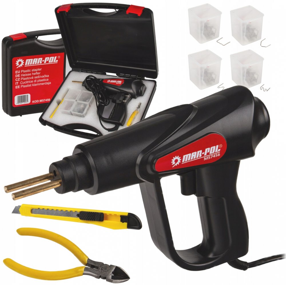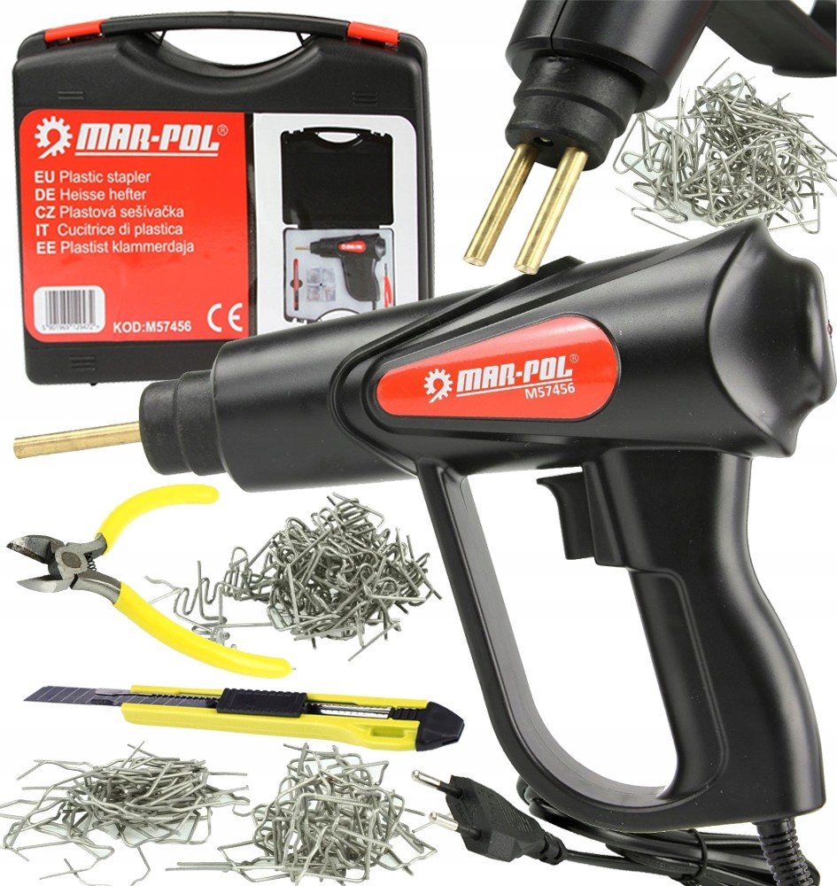 Nepostradatelný nástroj pro každou dílnu nebo karosárnu. Sada je vhodná pro všechny, kteří si chtějí svépomocí opravit rozbité plastové prvky. Pro spojení poškozených plastových dílců se používá natavení horkým vzduchem - praskliny se "sesponkují" pomocí ocelových sponek, které se svářečkou zataví do plastu a přebytečné konce sponek se ucvaknou. Vznikne pevný spoj...