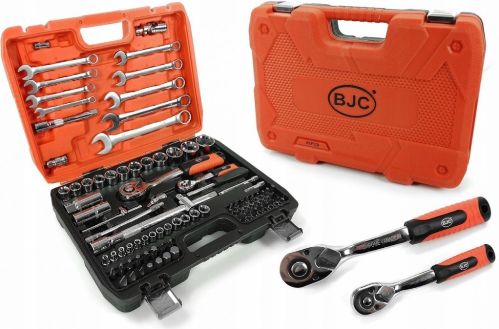 82 dílná sada nářadí v kufříku BJCSada nářadí v kufříku 82 ks BJC je skvělým vybavením při opravování automobilů, strojů nebo při práci v dílně. Sada nářadí je uložena v kvalitním plastovém kufru s kovovými zámky a kovovým kloubem otevírání. Sada obsahuje mj nástrčné klíče, ráčny, očko vidlicové klíče, bity a prodloužení.Technické údaje:Ráčna 1/2 '': 72T, 255 mmRáčna 1/4 '': 72T, 155 mmPosuvný klíč 1/4 '', 152,4 mmPosuvný klíč 1/4 '', 150 mmProdloužení 1 / 2 '': 125 mm; 250 mmProdloužení 1/4 '': 50 mm; 100 mmProdloužení ohebné 1/4 '' 150mmSvíčkový klíč: 16; 21 mmKardanový klíč: 1/2 '' i 1/4 ''Redukce: F3 / 8 '' x M1 / 2 ''Adaptér na bity 1/4 ''Adaptér na bity 5/16 ''Bity 5/16 ' 'TORX: T40; T45; T50; T55Křížové PHILIPS: PH3; PH4Křížové POZIDRIV: PZ3; Pz4Ploché: 8; 10; 12 mmŠestihranné bity: 8; 10; 12; 14mmKlíče očko-vidlicové: 8; 10; 11; 12; 13; 14; 17; 19; 22 mmPloché bity 1/4 '': 4; 5.5; 7 mmNástrčné bity 1/4 '': 3; 4; 5; 6 mmNástrčné klíče 1/4 '': 4; 4.5; 5; 5.5; 6; 7; 8; 9; 10; 11; 12; 13; 14 mm L = 25 mmNástrčné bity křížové Philips 1/4 '': Ph1; Ph2Nástrčné bity křížové Pozidriv 1/4 '': PZ1; PZ2Nástrčné bity Torx 1/4 '': T8; T10; T15; T20; T25; T30Nástrčné klíče 1/2 '': 14; 15; 16; 17; 18; 19; 20; 22; 24 mm L = 38 mm; 27; 30; 32 mm, L = 42 mm