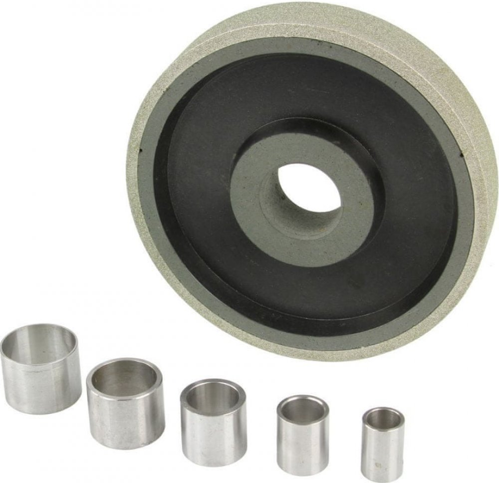 Diamantový brusný kotouč pro ostření a broušení. Určeno pro použití ve stolních bruskách. Součástí kotouče jsou redukce pro různé středové otvory kotoučů.