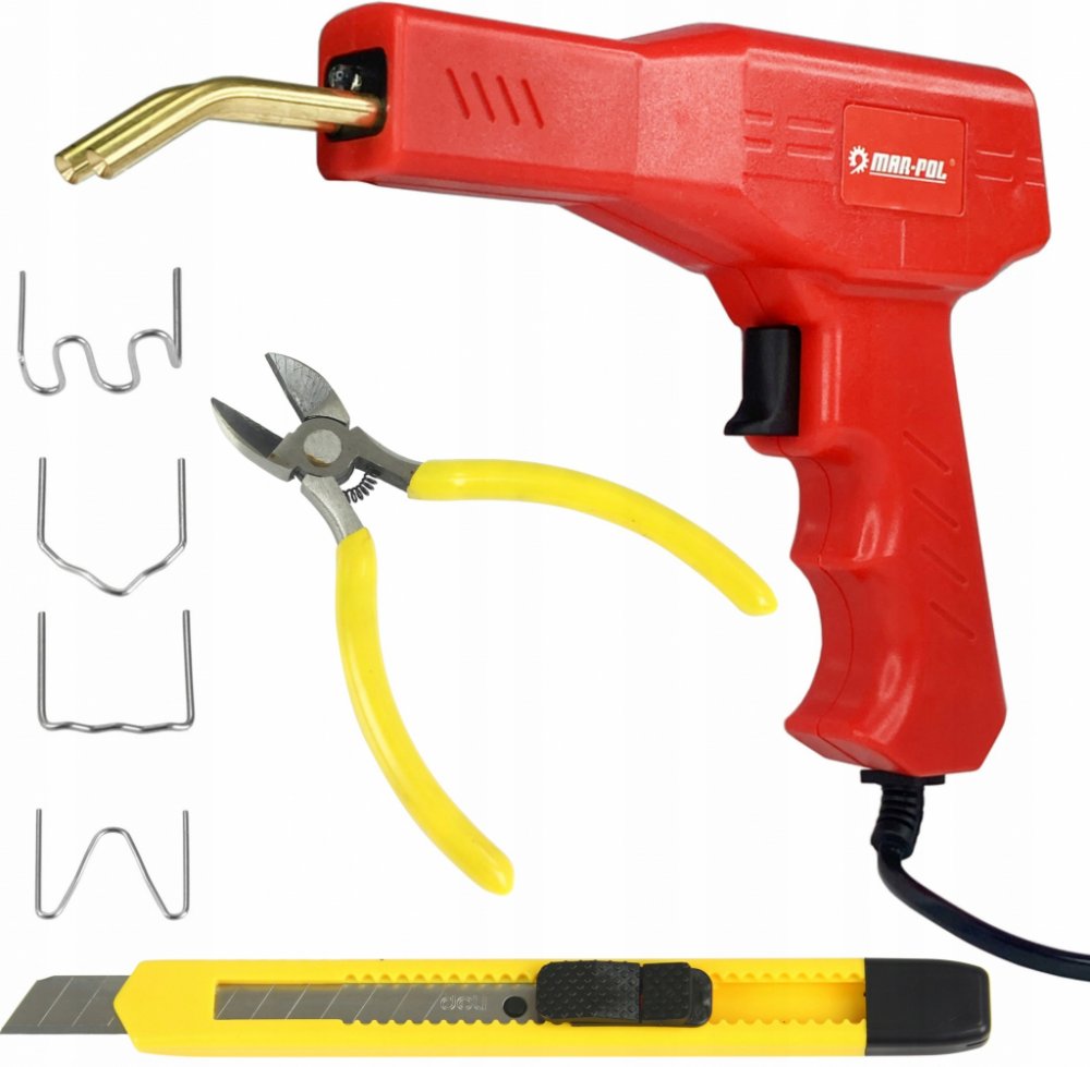 Nepostradatelný nástroj pro každou dílnu nebo karosárnu. Sada je vhodná pro všechny, kteří si chtějí svépomocí opravit rozbité plastové prvky. Spojení poškozených plastových dílců se používá natavení horkým vzduchem - praskliny se "sesponkují" pomocí ocelových sponek, které se svářečkou zataví do plastu.