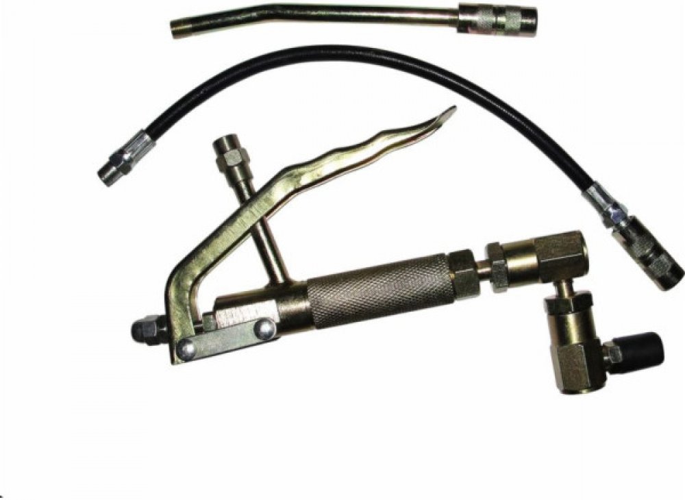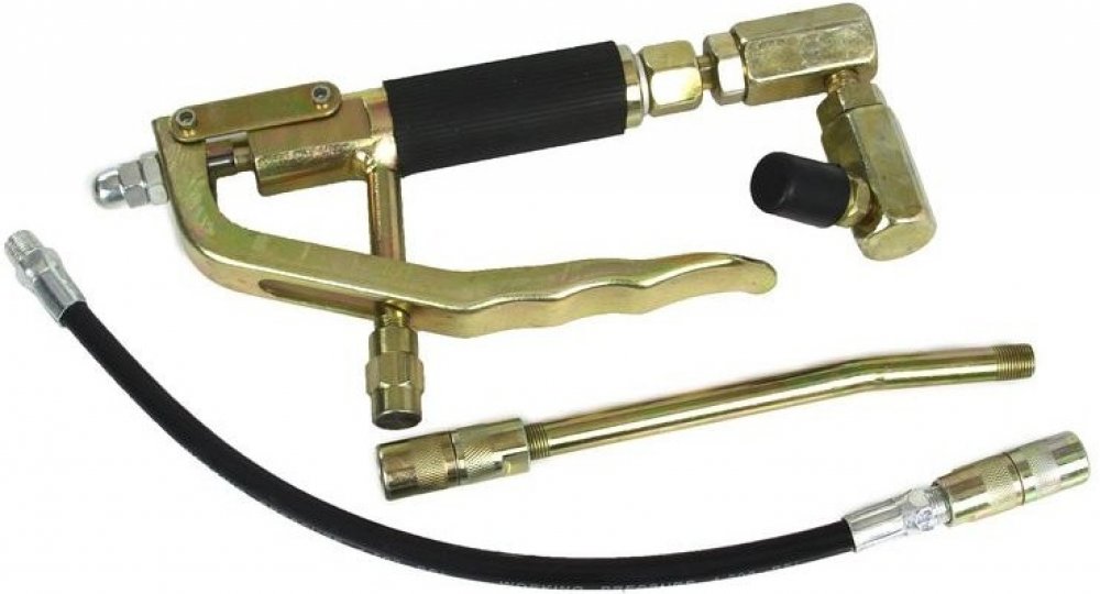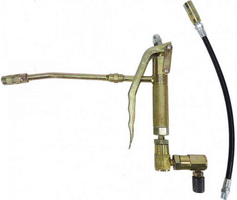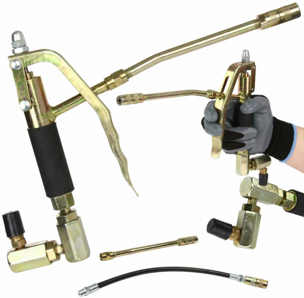 Pistole je vybavena dvěma typy mazacích nástavců. Prvním z nich je kovový nástavec, který je ideální pro aplikace vyžadující vyšší odolnost a přesnost. Druhým nástavcem je gumová hadička. Tato hadička umožňuje flexibilnější přístup k těžko dostupným místům, což je užitečné v situacích, kdy je potřeba mazat součásti nacházející se v omezených prostorech. Tato kombinace nástavců zajišťuje univerzálnost a široké možnosti použití pistole při různých úkolech údržby.